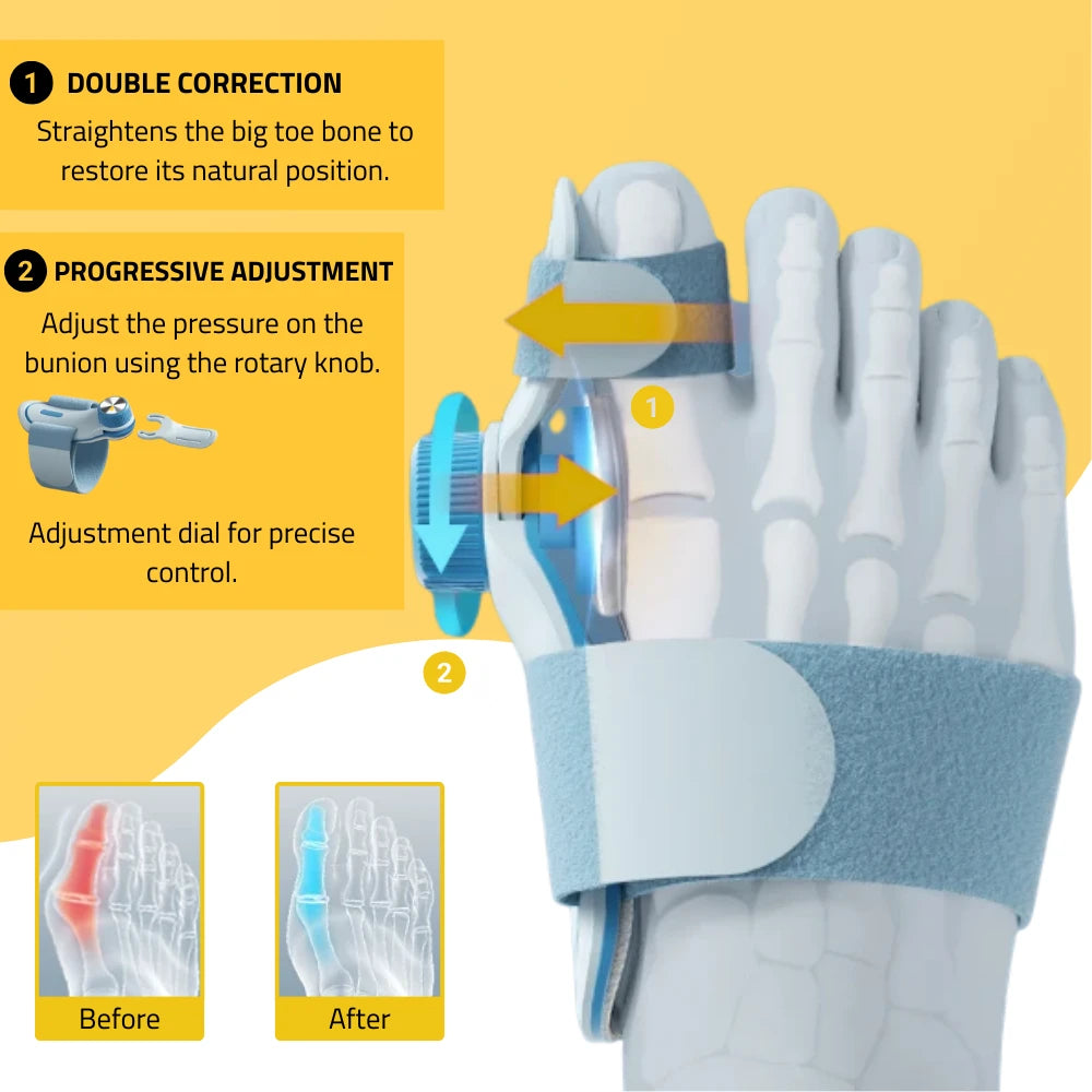 The Hallux Valgus BunionFIX® Orthosis gradually corrects the deviation of the big toe thanks to its ergonomic structure, silicone cushion, and adjustable knob, providing comfort, stability, and long-lasting relief against bunions and joint pain.