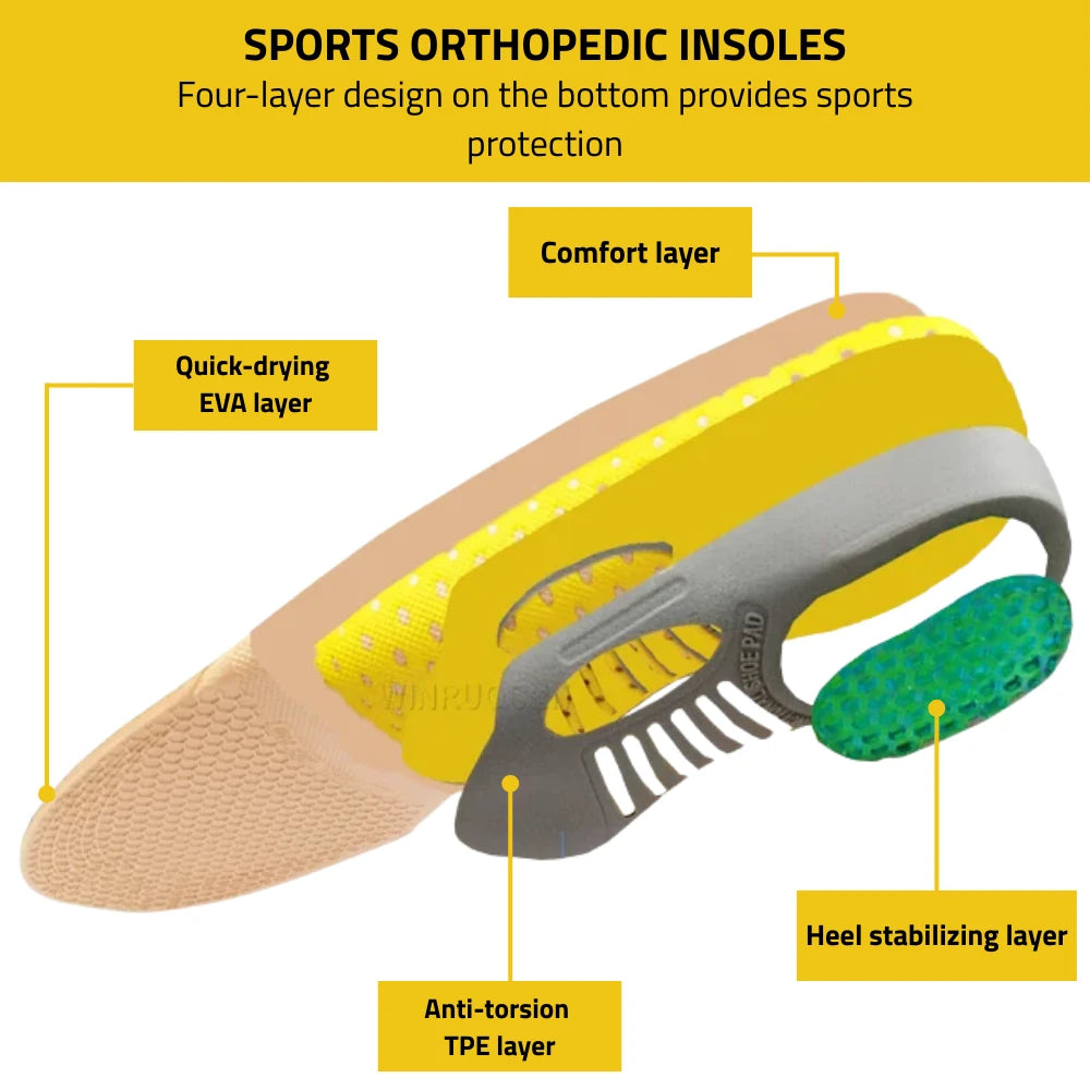 Yes, they are designed to absorb shocks, stabilize the heel, and support the arch, providing comfort and safety during various sports activities.