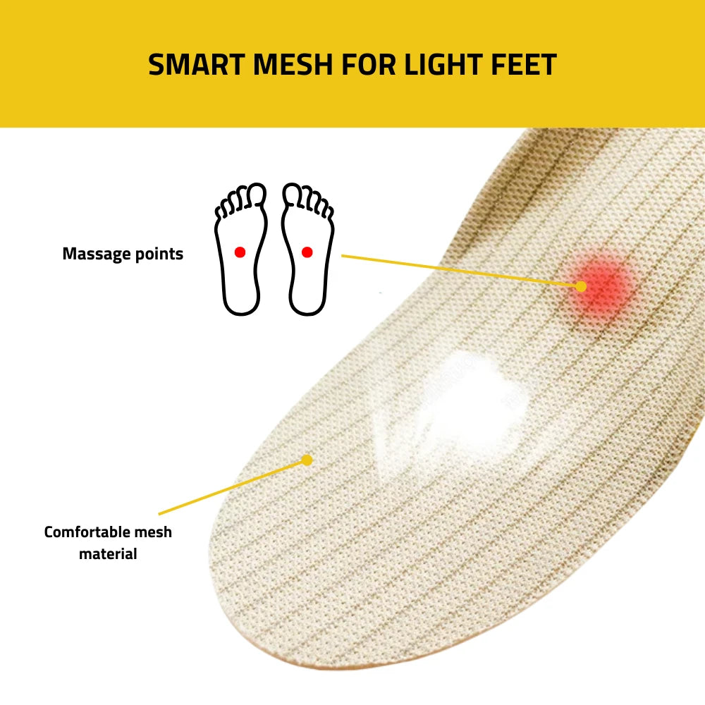ReliefSTEP® combines a technical mesh fabric with plantar stimulation zones to provide a feeling of lightness and enhance micro-circulation.
