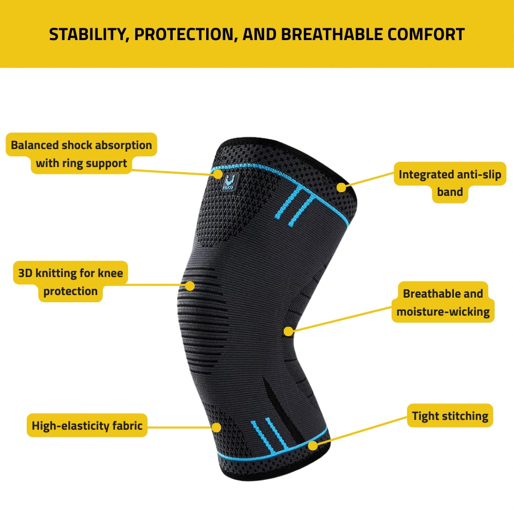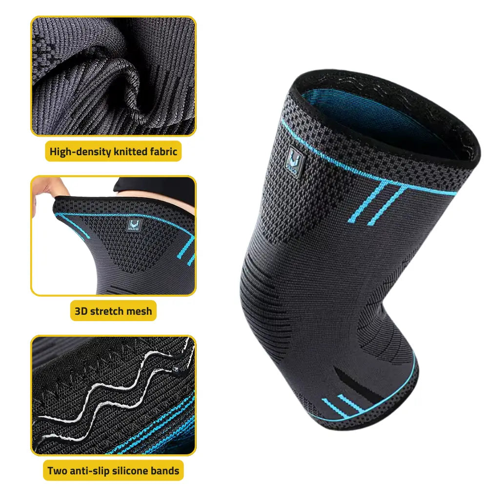 Knitted Fabric: A breathable, durable weave that wraps around the knee.