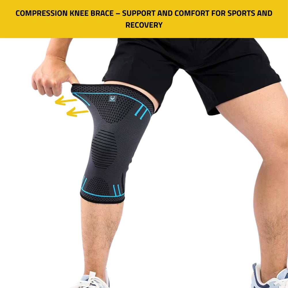 Knee brace designed for meniscus injuries, combining joint stability with functional flexibility. Its high-density elastic-compression fabric enhances circulation, reduces inflammation, and supports recovery