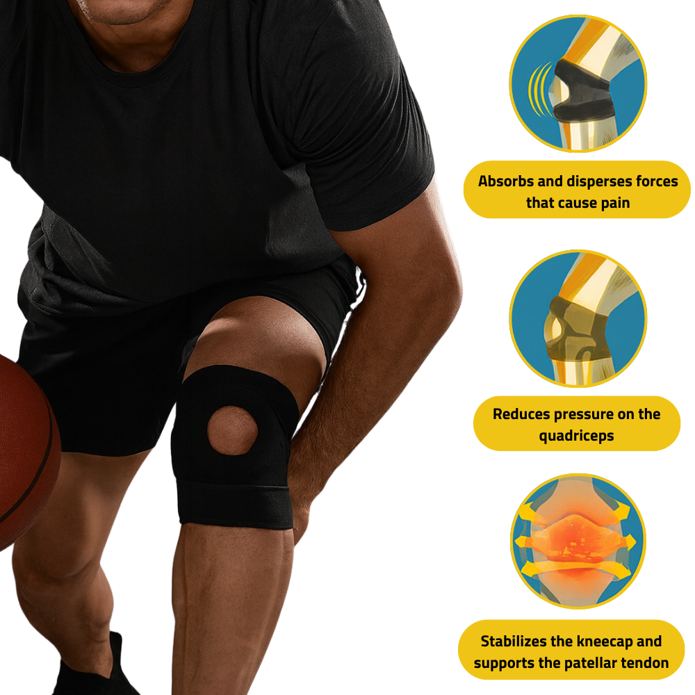 The Patellar Support Knee Brace reduces pressure on the joint and helps relieve pain caused by repeated strain.