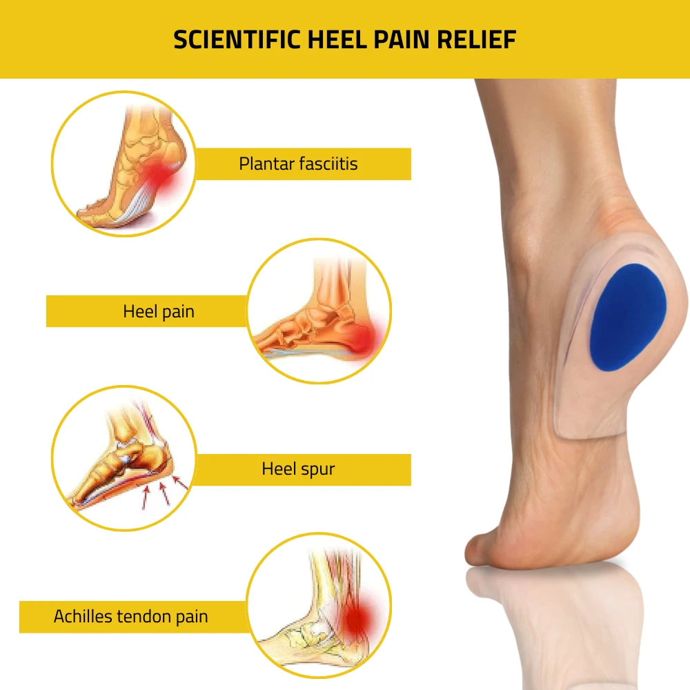 The HeelPRO® Silicone Heel Pad offers powerful cushioning in silicone gel, relieving heel pain, improving posture, and reducing joint fatigue.Adapted to all shoes, it ensures daily comfort, reinforced stability, and optimal hygiene thanks to its easy maintenance.